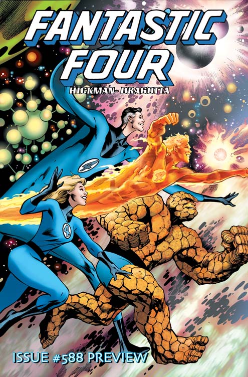 In the "Three" storyline, concluding in Fantastic Four #587 (cover date March 2011, published January 26, 2011), the Human Torch apparently dies stopping a horde of monsters from the other dimensional Negative Zone. The series is scheduled to end with the following issue, #588, and relaunch in March 2011 as simply FF. ![]() ![]() ![]() ![]() ![]() ![]() |